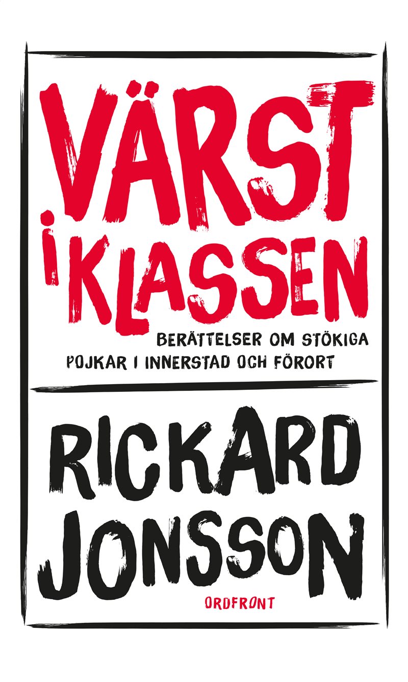 Värst i klassen skildrar hur det gick till när »förortseleven« eller »invandrarkillen« de senaste decennierna vuxit fram som nytt namn för skolans stökiga pojkar. Med utgångspunkt i två fältarbeten i gymnasieskolor i Stockholms innerstad och i en förort granskar Rickard Jonsson talet om pojkarnas skolkris och antipluggkultur. Han frågar sig varför Fredrik Reinfeldt en gång ville kalla sig »förortskille« och varför några elever som han följer absolut inte vill bli tilltalade så. Jonsson samlar framgångshistorier bland unga som sökt sig från förorten till innerstaden i det fria skolvalets tid, och han följer andra elever som under sin skoltid haft rollen av att vara den störiga killen.